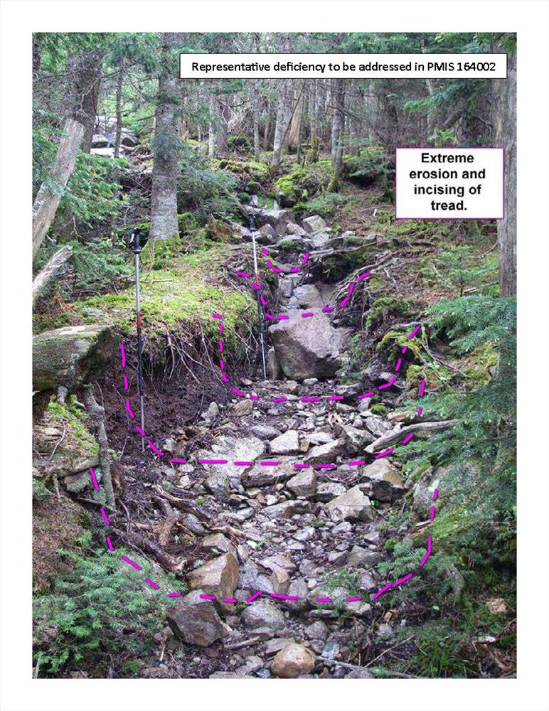 Pt. 1. Typical example of an eroded trail section in Maine.