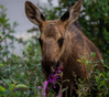 A moose calf eating fireweed
