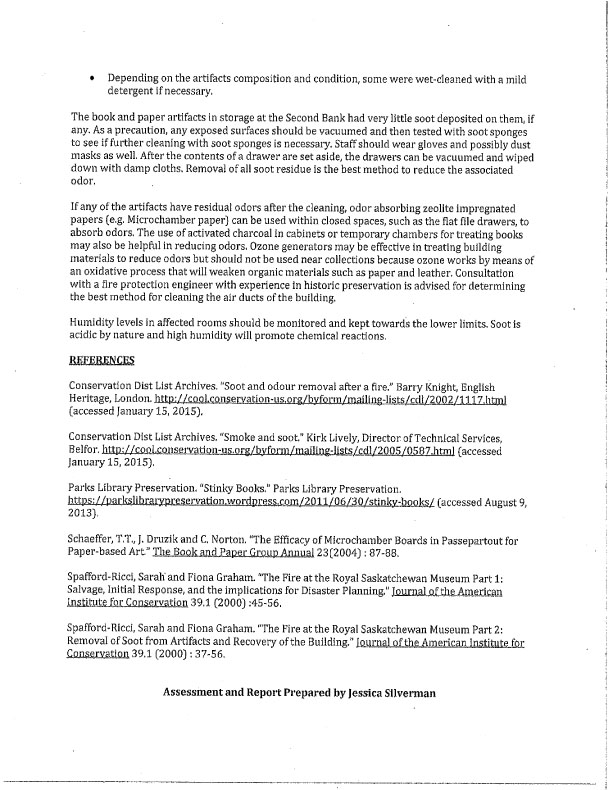 Museum collection condition assessments for soot damage following 2nd Bank fire