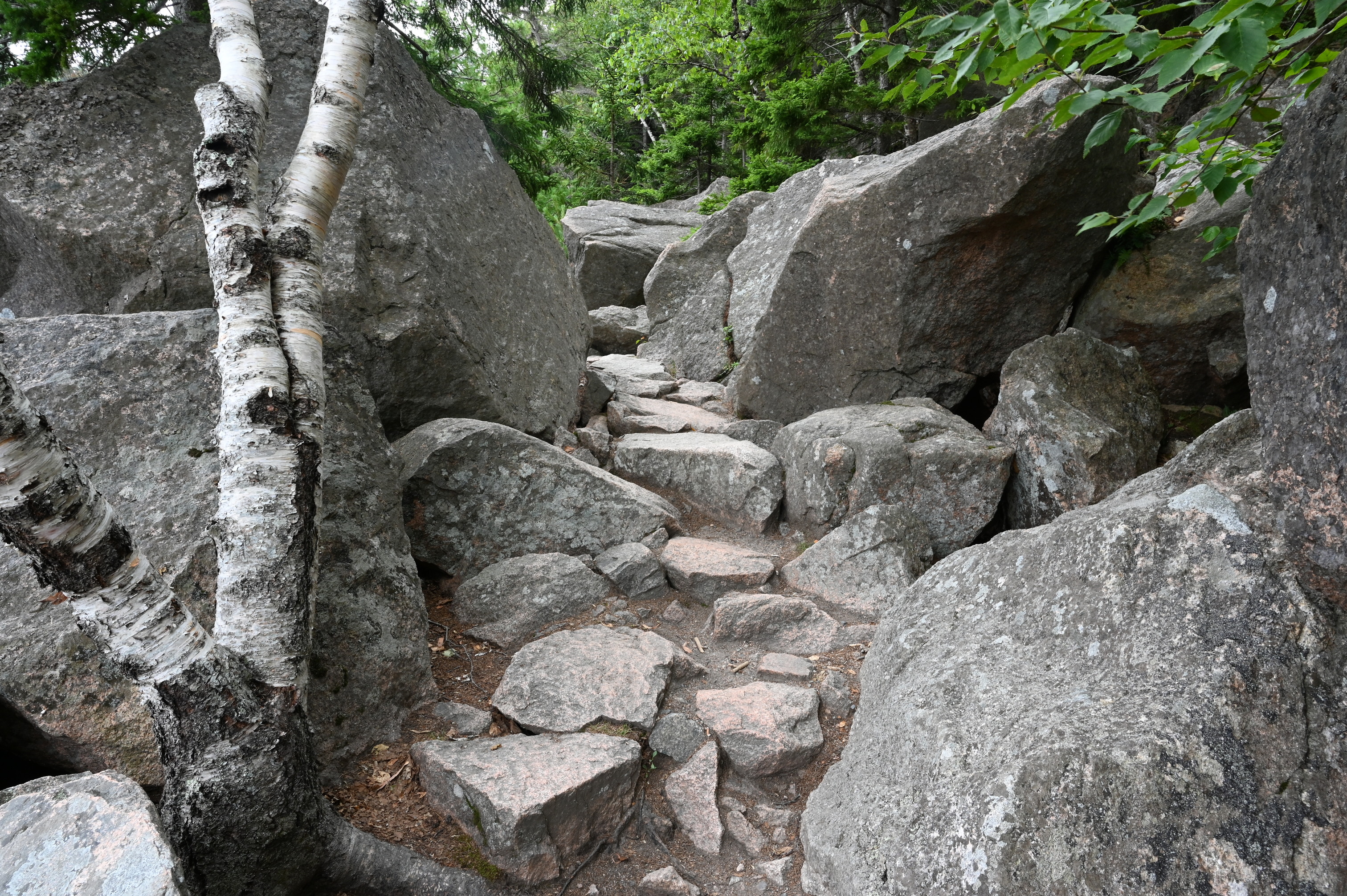 Rocky steps among large boulders.