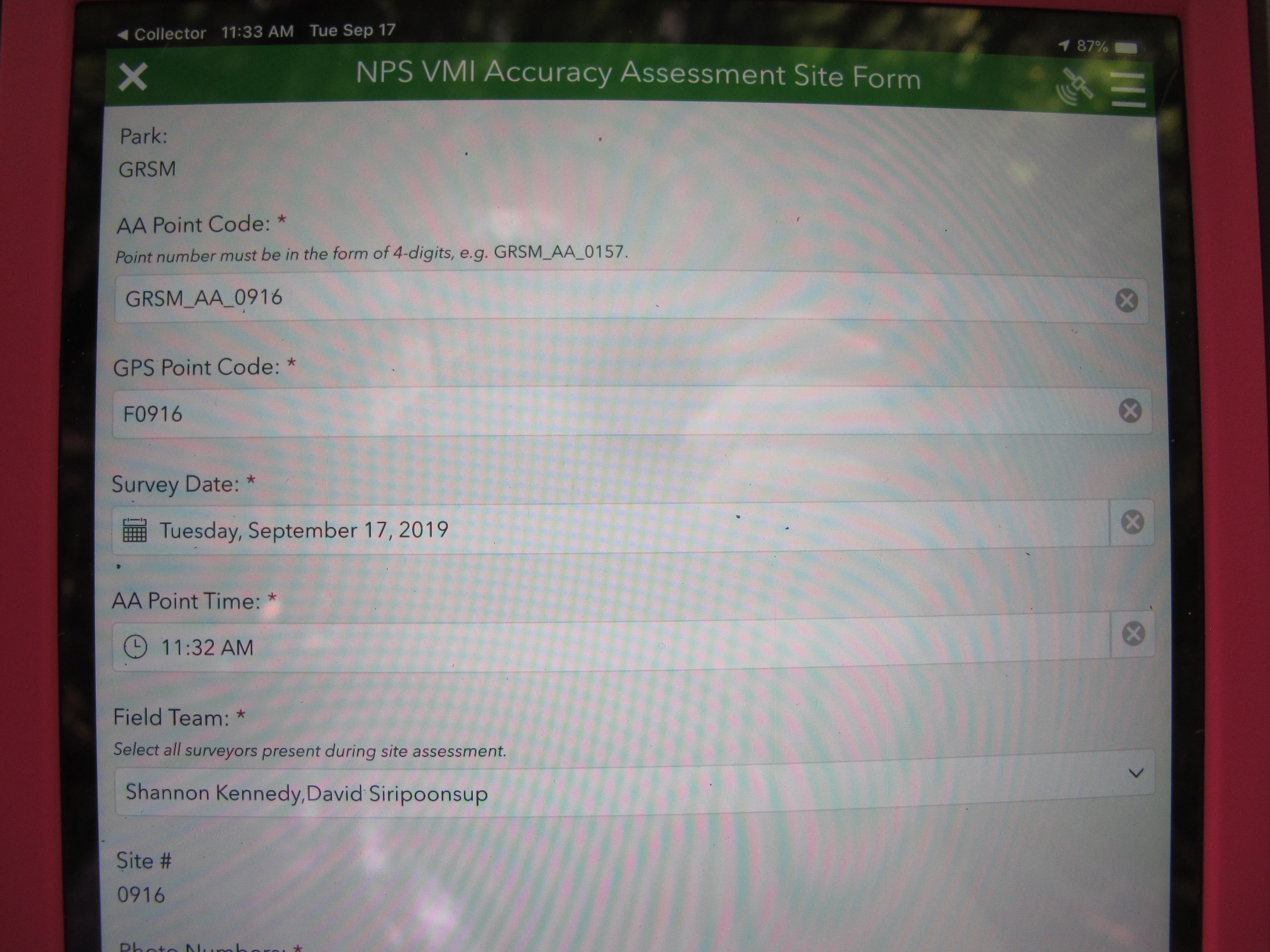GRSM Accuracy Assessment. Plot Code: GRSM_AA_0916_1