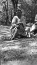 Ta-buce out gathering acorns and grass seeds, Ahwahnee Mdw. 1930's (?)