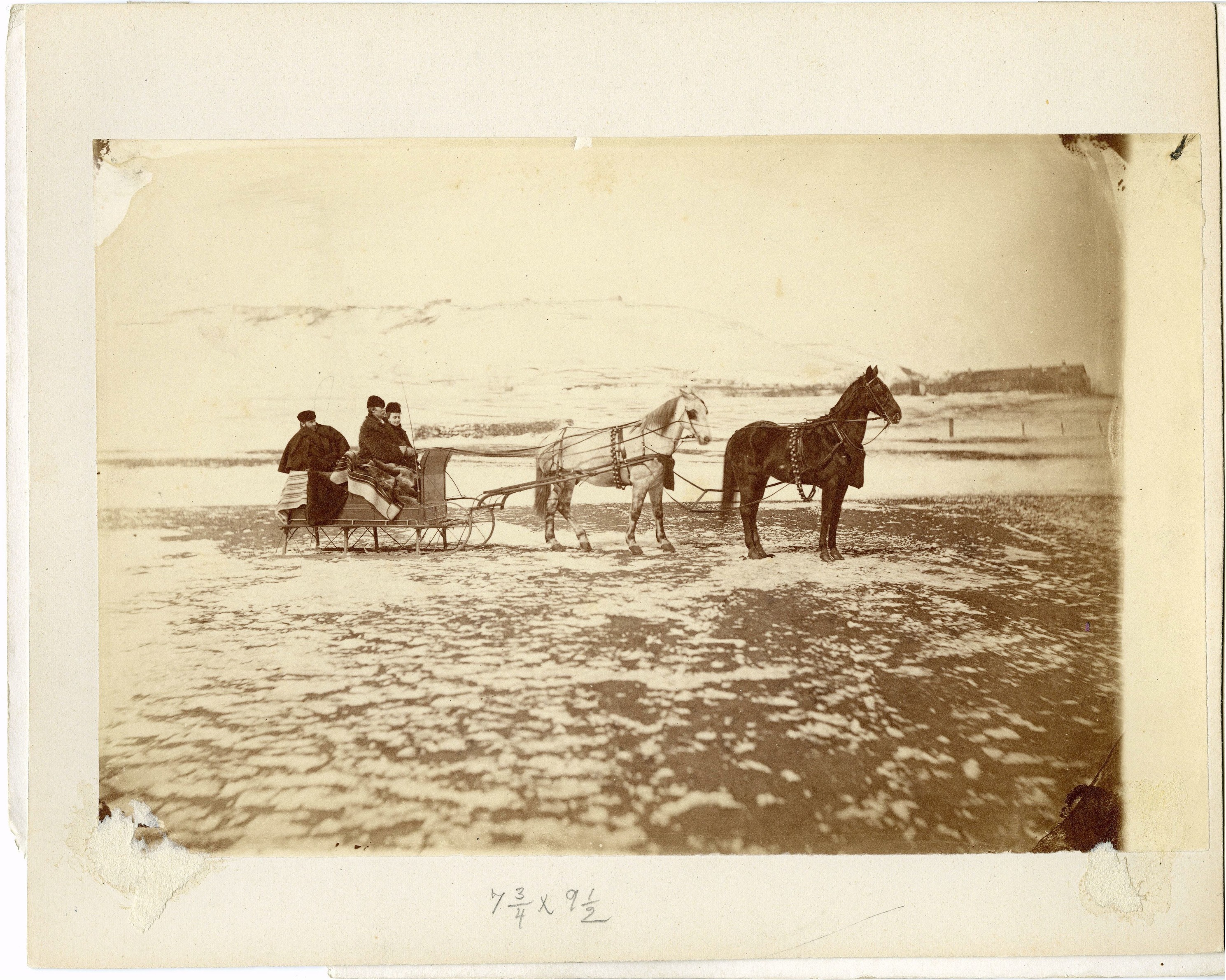 Thomas Ward Custer, William W. Cooke, and Agnes Wellington in a Horse-Drawn Sleigh