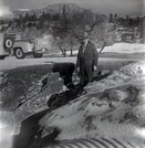 Man inspecting roadside progress during road work along the scenic canyon drive near the Grotto. ; ZION Museum and Archives Image 002.03.05-33of37 ; ZION 15933