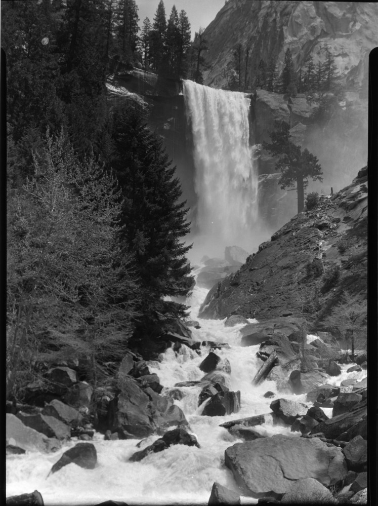 Copy negative of three stereographs. One of Vernal Fall by Thomas Houseworth, two by C. E. Watkins. Copied by RHA in June 1952.