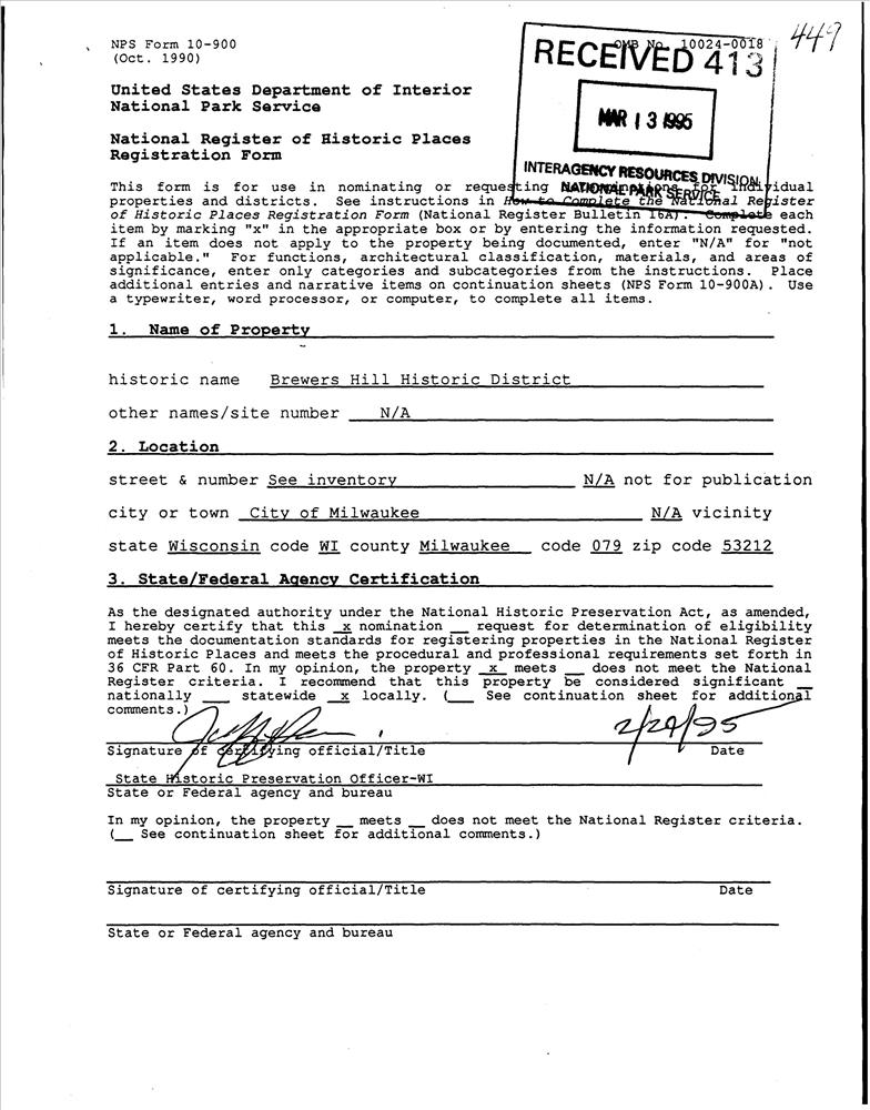 Roughly, Brown and Lloyd Sts. and Garfield and North Aves. from 2nd St. to Hubbard St.