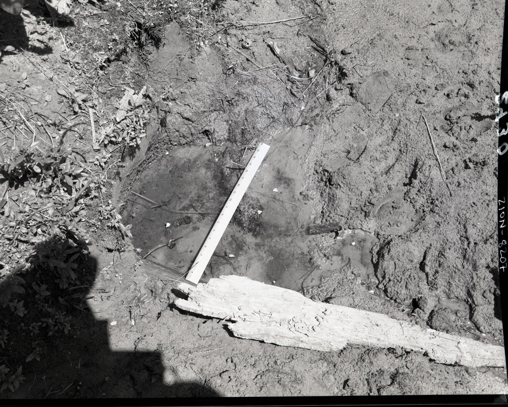 Vandalism of natural resources at Neck Spring, water matters involving Evan S. Lee, deer tracks. ; ZION Museum and Archives Image 101_01_031 ; ZION 8359