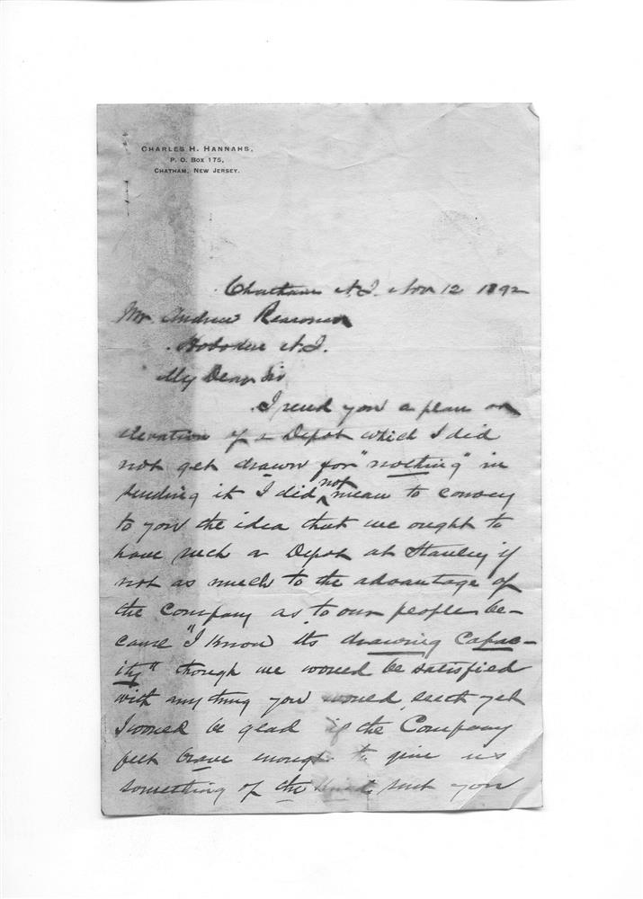 A+012+0436.PA#001--Letter to Supt. DL&WRR from Charles H. Hannahs regarding Depot--Stanley, NY [1892.11.12]
