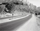 Highway 1 re-alignment - traffic divider and grade separation near entrance to South Campground. ; ZION Museum and Archives Image 002_10024 ; ZION 10166