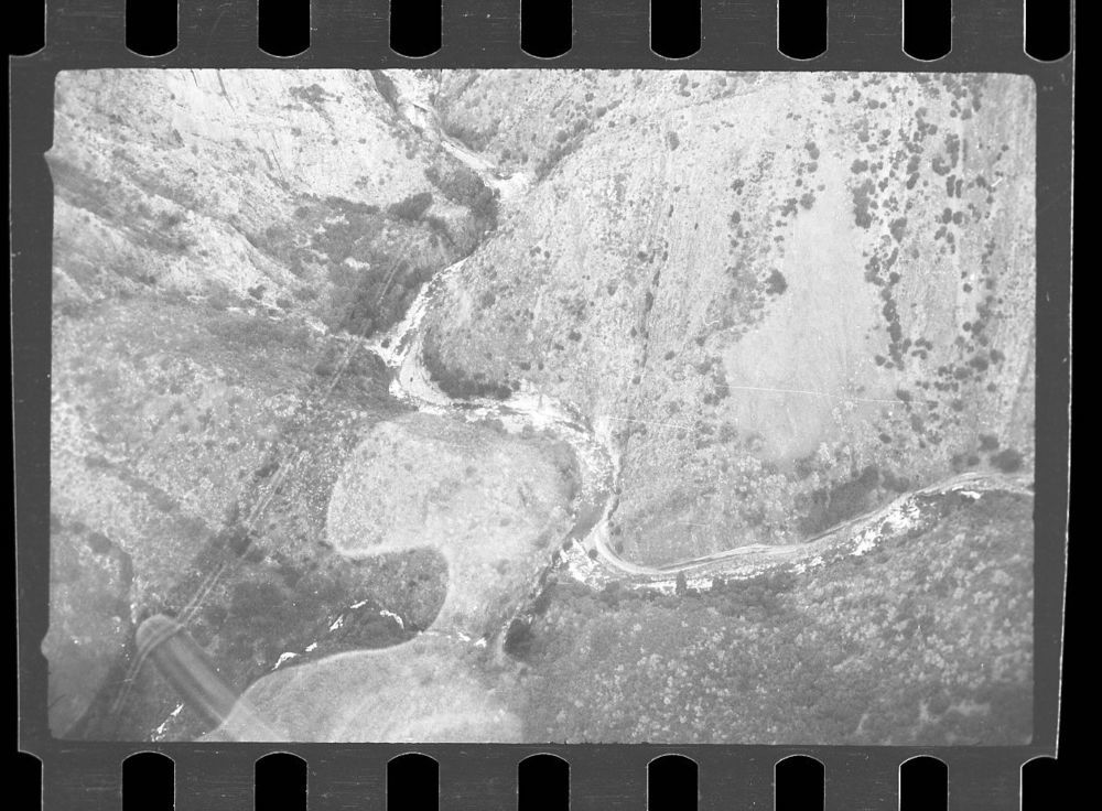 Gordon Bender, 560114, South Fork Kings Canyon, Sequoia National Forest, Flood and storm damage aerial view of canyon.