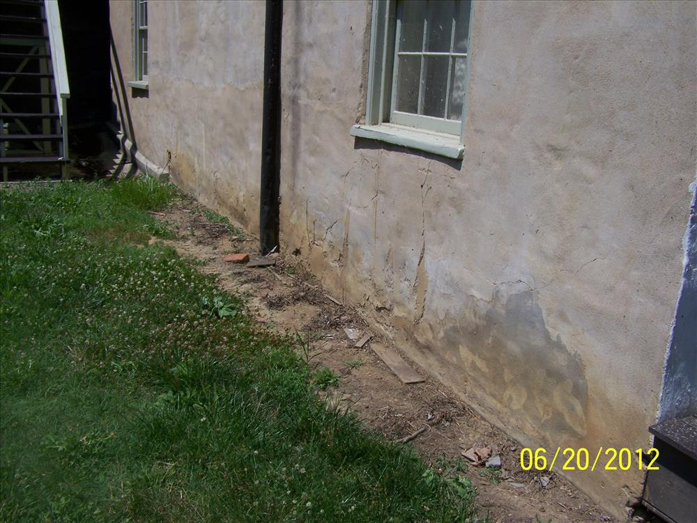 2012 - Views of the deteriorating stucco on the west elevation of the historic John Wilson Building #45 in Lower Town, Harpers Ferry, WV.