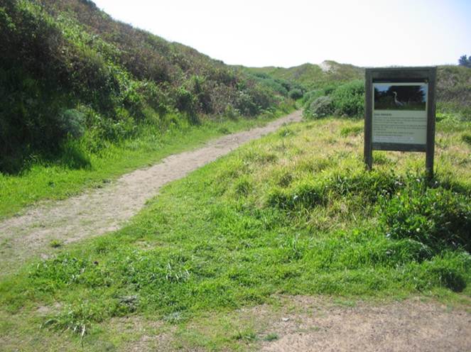 Phase 4 actions will alter visitor facilities to allow restoration of natural resources at the base of a watershed with high natural resource values. Actions include: rotating the visitor parking lot and picnic area out of the floodplain; constructing a new, improved lot and picnic area; installing a 215-LF pedestrian boardwalk/bridge over the floodplain for access to the beach (and connecting it with 220 LF of boardwalk/bridge previously installed in Phase 3); restoring about 1.4 acres of wetland/floodplain, and restoring foredunes at the beach, which entails both creating a new route to the beach and revegetating native dune species. The new 165-car visitor parking lot will be built using about 10,000 CY of fill from the old parking lot. Native soil excavated to build the new lot will be used to restore the floodplain. The parking lot, picnic area and trail will meet all accessibility requirements. The parking lot will be surfaced with asphalt and “miscellaneous” furnishings that support the desired park visitor experience will be installed, including 3 new accessible picnic tables, a shed for beach wheelchairs to match the new restrooms, 3 new benches, 440 LF of post-and-cable protective fencing on the perimeter of the parking lot, a 22-LF privacy screen near the bathrooms, and reinstallation of interpretive signage.