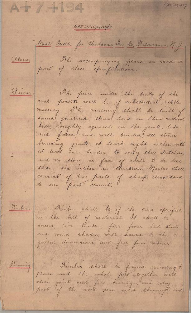 A+007+0194.PB#001--Coal trestle--Yantacaw Ice Company--Specifications--Delawanna, NJ [1897.06.30]