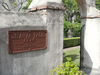 A gated concrete archway with a brown plaque De Anza Trail 1774