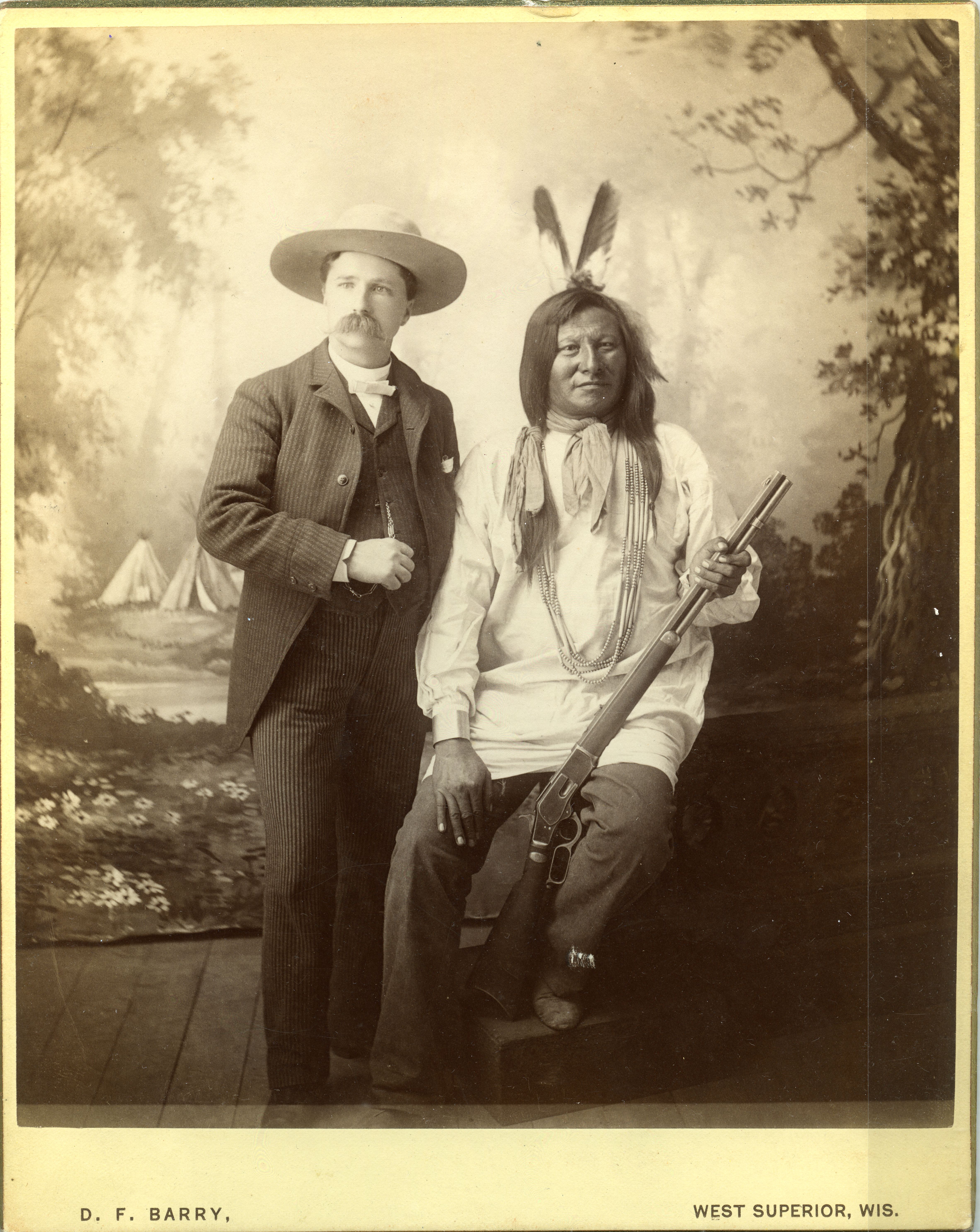 Courtesy of the National Park Service, Little Bighorn Battlefield National Monument, LIBI_00019_00203, D F. Barry, "Rain in the Face and D. F. Barry, in Full View," circa 1880