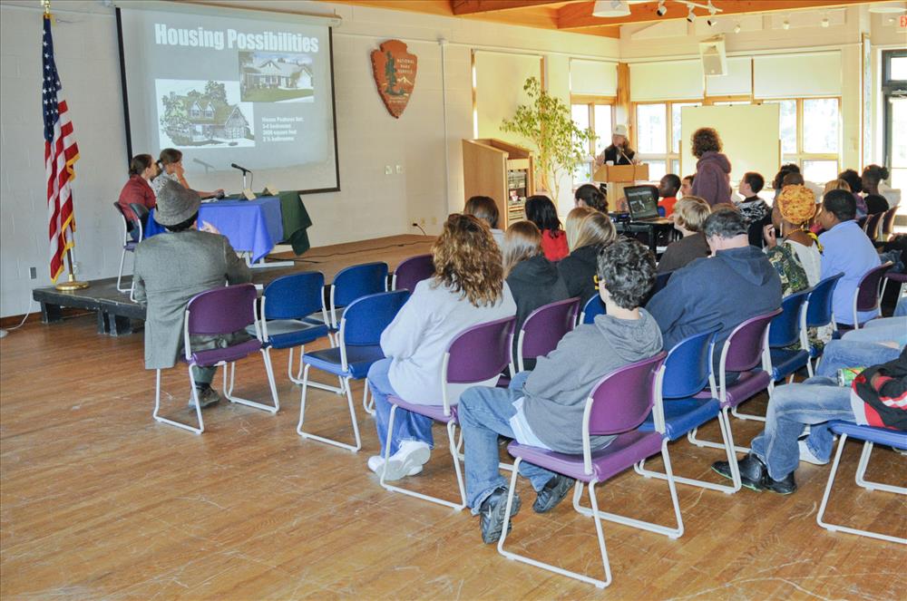 Throughout the Level 2 curriculum, middle school students have been learning about low-impact development and applying it to planning a residential housing development on specific pieces of land bordering. At the culminating class, CVEEC staff play different roles at a Planning Commission meeting and student groups present their site development proposals. || The Cuyahoga Valley Environmental Education Center's residential program provides fourth through eighth grade classes an overnight educational experience that integrates science, nature study, environmental issues, and the arts. Students learn natural history and the concepts of watershed, biodiversity, and habitat. In addition, environmental issues and the process of environmental decision-making are explored. The curriculum is designed to meet state standards and teach proficiency skills, especially in science and social studies.