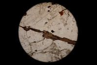 Circular microscopic image of rock structure.