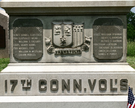1 of 8 Connecticutt Monuments. Denotes general location of regiment July 1, 1863 before retreat to East Cemetery Hill. Located at Barlow Knoll on E Howard Avenue. || Mn fnd base 5'x8', 2 part shaft. 1st part has excised polished letters, 2nd part has polished excised tablets & crests w/ incised inscriptions. All 7' H. Staining on mn.