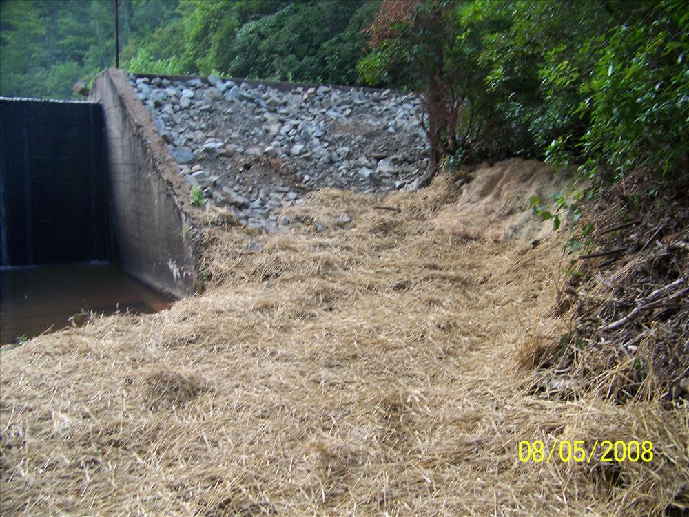 Camp 1 Dam with rip rap & seed/straw in place on left side looking Northeast