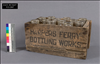 CRATE THAT HOLDS 24 BOTTLES. THE WORDS HARPERS FERRY BOTTLING WORKS ARE WRITTEN ON BOTH SIDES OF THE CRATE IN BLACK. THERE ARE TWO HOLE HANDLES ON THE SIDES. THE CRATE HAS SEVERAL CRACKS IN SEVERAL AREAS. THE WOOD IS STAINED WITH BLACK POWDER OR DIRT.