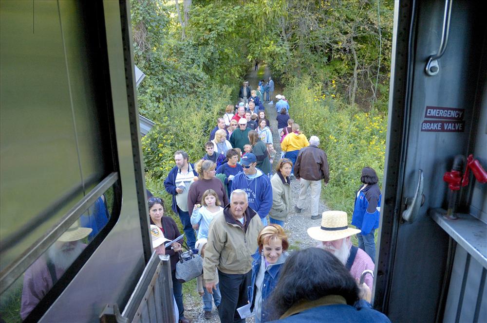 Cuyahoga Valley National Park partners with Cuyahoga Valley Scenic Railroad to offer a wide variety of public programs throughout the year. Campfire Train is offered each autumn. Visitors ride in historic train cars from Akron, Ohio to the Conrad Botzum Farmstead. On the train costumed characters tell ghost stories. At the farmstead visitors enjoy a campfire and hayride. || The history of trains in the Cuyahoga Valley stretches back more than 100 years. In 1880, the Valley Railway began operations, transporting coal to Cleveland, Akron, and Canton from the Tuscarawas River Valley and providing passenger service along the way. In the 20th century, competition from automobiles, trucks, and buses caused the decline of both freight and passenger service. Interest in the line was renewed in 1972 as a scenic excursion route. Originally known as the Cuyahoga Valley Line, the scenic railroad now operates as Cuyahoga Valley Scenic Railroad (CVSR) and is a popular way to enjoy this national park.