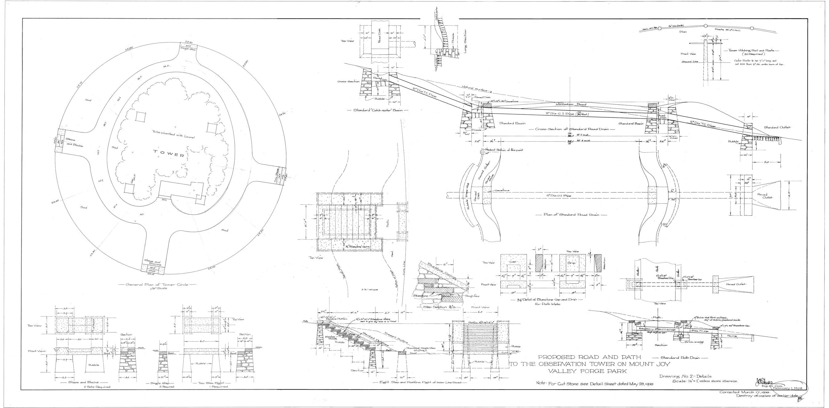 Proposed Road and Path to the Observatory Tower on Mount Joy, Valley Forge Park, Drawing No. 2, Details
