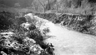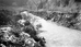 Basket dam #1 after a flood destroyed a footbridge leaving debris scattered along the banks. ; ZION Museum and Archives Image ZION 13643 ; ZION 13643