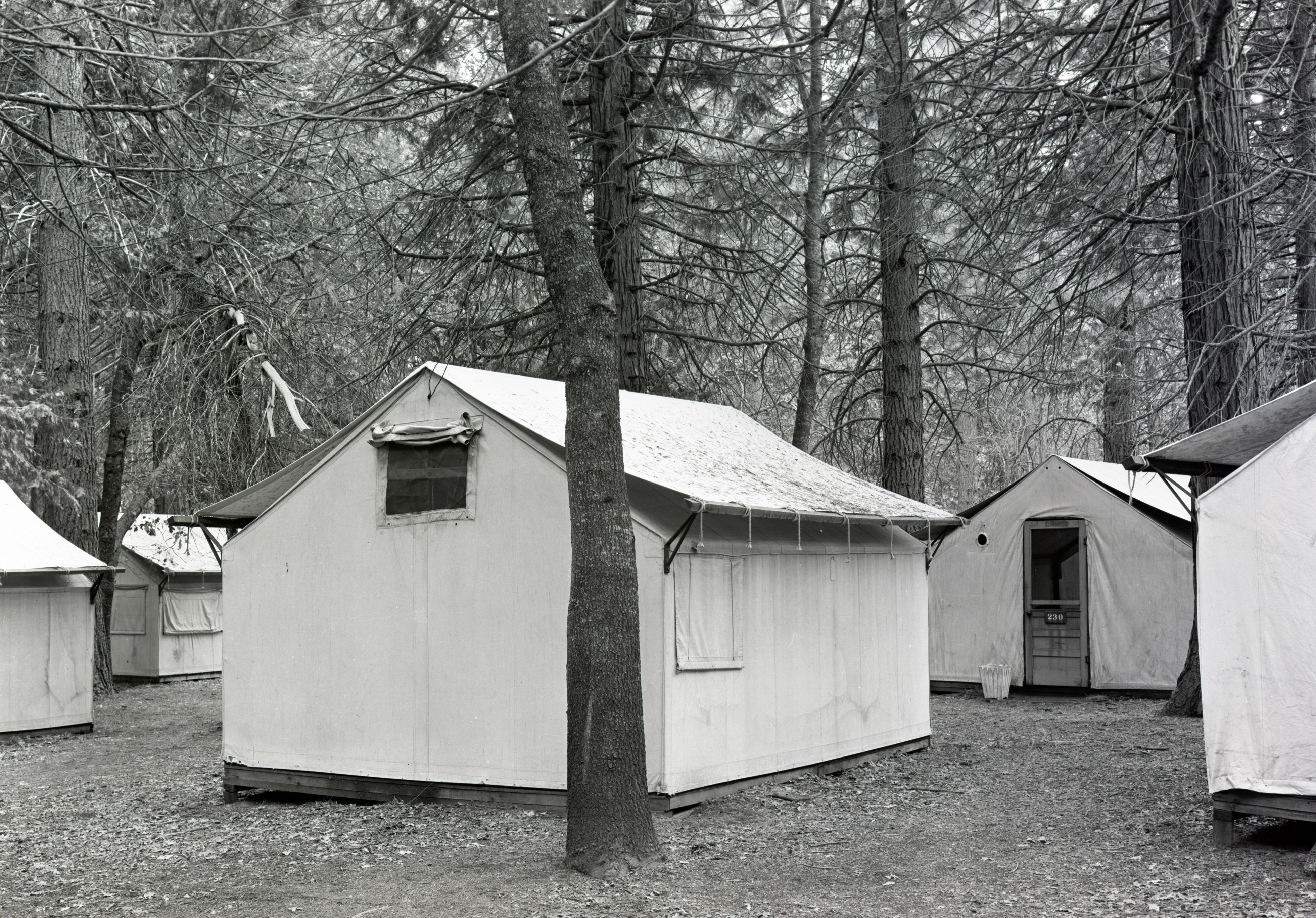 Tent at Yosemite Lodge, front. Used in a concessions report dated June 6, 1947. In Yos. RL 979.447 Y-16c #31.
