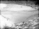 Tree dam at lower end of Hop Valley constructed by Evan Lee; 3-feet of sediment. [Also see negative 13138 & 13140] ; ZION Museum and Archives Image ZION 9356 ; ZION 9356