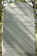 Monument contributes to national significance of park under NR Criterion A because it represents the national movement among veterans & related groups to commemorate Civil War battlefields. || 7'4" x 5'6" x 12' high, monument has 2-step rock-faced base and simple slab-like shaft which is polished on its front and carries an inscription. Acorn is carved into upper step of base. Top is peaked.