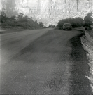 Construction trucks driving on road during east side road repair and turn out construction. ; ZION Museum and Archives Image 002.13.01-47of53 ; ZION 15933