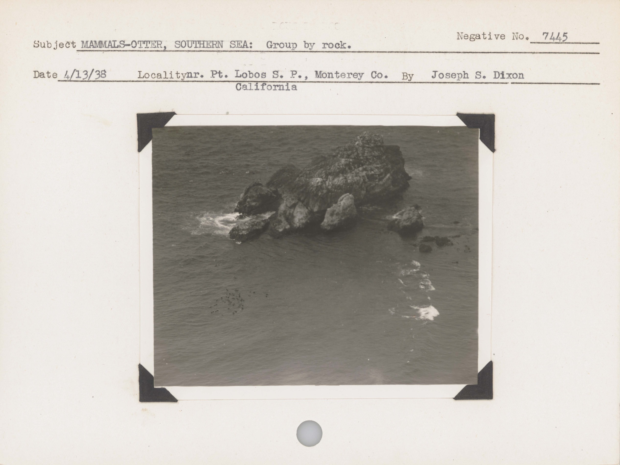 Mammals--Otter, Southern Sea: Group by rock. Locality: Near Point Lobos State Park, Monterey County, California. Negative #: 7445