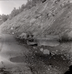 Side of the road with large rocks during construction along the scenic canyon drive near the Grotto. ; ZION Museum and Archives Image 002.03.05-29of37 ; ZION 15933