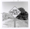 Road sign reading 'Down Grade Next 5 Miles' in Kolob Canyon. ; ZION Museum and Archives Image 007.01.01-56of73 ; ZION 15933