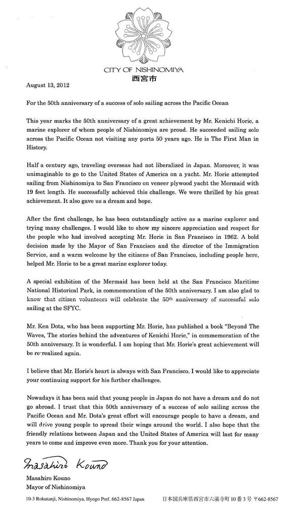 Letter from Masahiro Kouno, Aug. 13, 2012