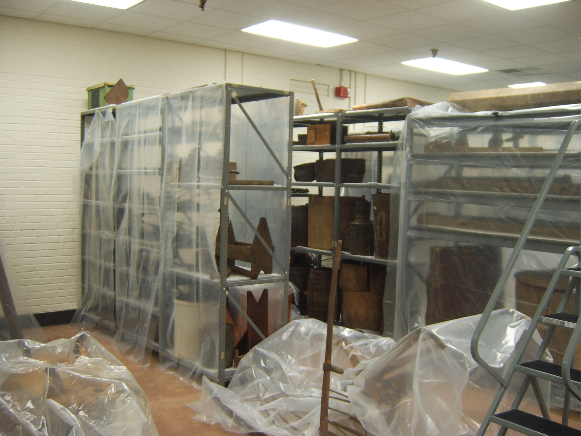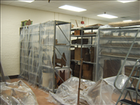 Photos of Park's museum collection taken by Deb Chory, Park Museum Technician. Museum collection shown as temporarily stored at Office of Science and Technological Information at Oak Ridge National Laboratories operated by Department of Energy. Photos show how museum collection/artifacts are not being stored according to standards. Space is limited in this storage facility as is evident in photos.
