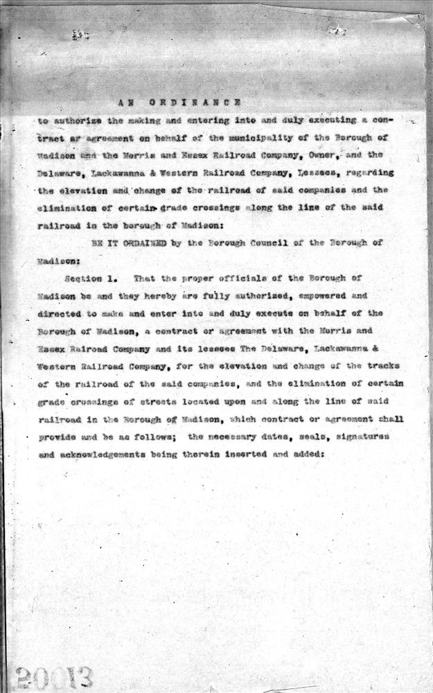 50013.PB#001--Proposed ordinance authorizing grade crossing elimination--Madison, NJ--10 pages