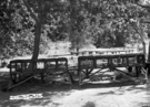 Park visitors assembled in front of Utah Parks Company bus at the Temple of Sinawava. ; ZION Museum and Archives Image ZION 13390 ; ZION 15933