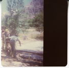 Man works with gravel along the Zion-Mt. Carmel Highway switchbacks. ; ZION Museum and Archives Image 002.02.02-8of12 ; ZION 15933