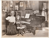Theodore Edison as a boy playing the piano in Den at Glenmont, Miss Lucy Bogue at his side.