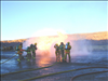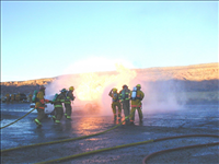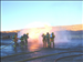 Firefighters fight vehicle fire involving two vehicles in simulation of a broadside collision during training at Mesa Verde National Park in 2001.