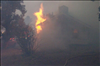 Night photos of a house burning during the Long Mesa fire in Mesa Verde National Park, July-August 2002