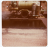 Section of road after chipsealing with close up of chipsealing vehicle. ; ZION Museum and Archives Image 002.12.05-13of23 ; ZION 15933
