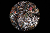 Circular microscopic image of rock structure.