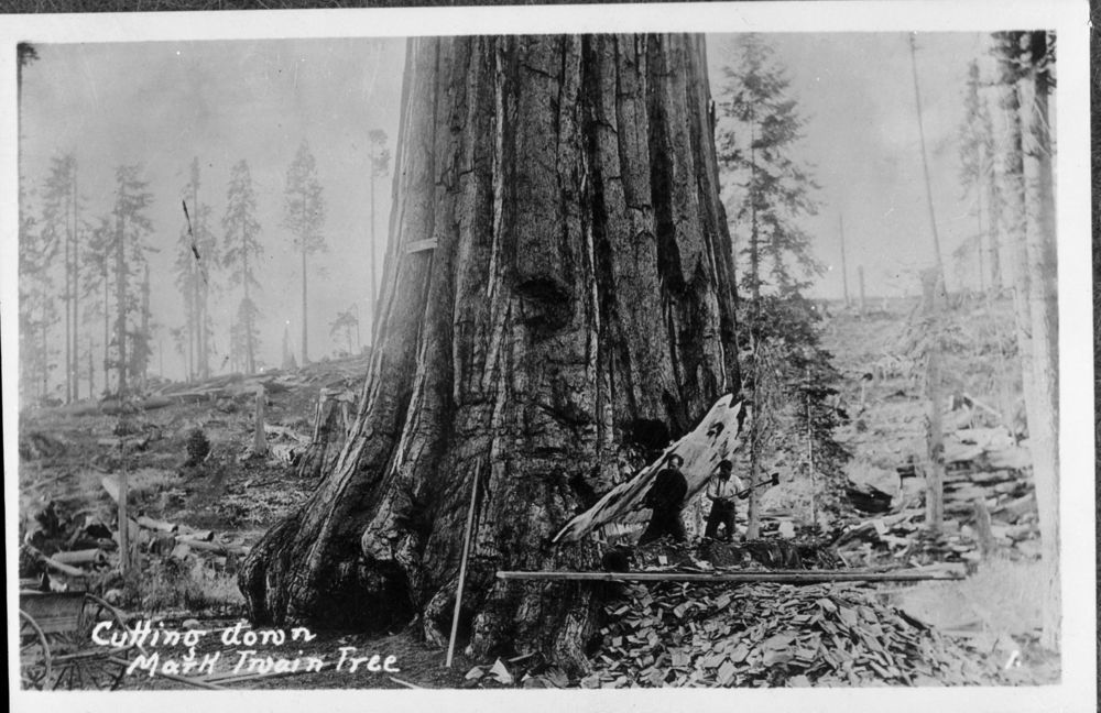 Mark Twain Tree, Logging. Cutting the Mark Twain Tree.