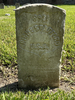 Front of historic upright marble headstone with recessed shield with recessed lettering face.