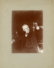 Thomas Edison holding bulb or test tube.