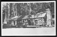 Mariposa Big Trees Cabin - built in 1885. Report of Commissioners for Yosemite Valley and Mariposa Grove of Big Trees, 1886, says "Last year a comfortable and artistic log cabin was erected --- in the grove." Original print in the over-sized photo drawer i