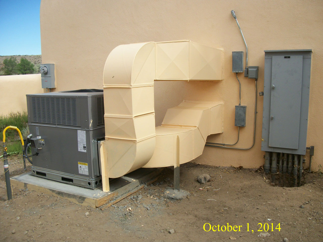 Photos show air-conditioning units before and after installation of new system