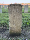 Front of historic upright marble headstone with recessed shield face.
